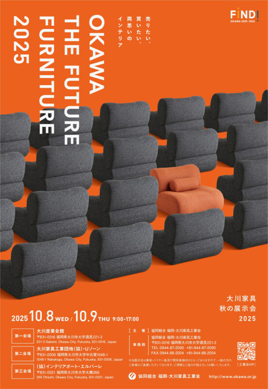 2025年10月8日から9日「OKAWA The Future Furniture 2025」に第一会場・大川産業会館と第三会場・㈿インテリアポート・エルバーレに出展致しました。
