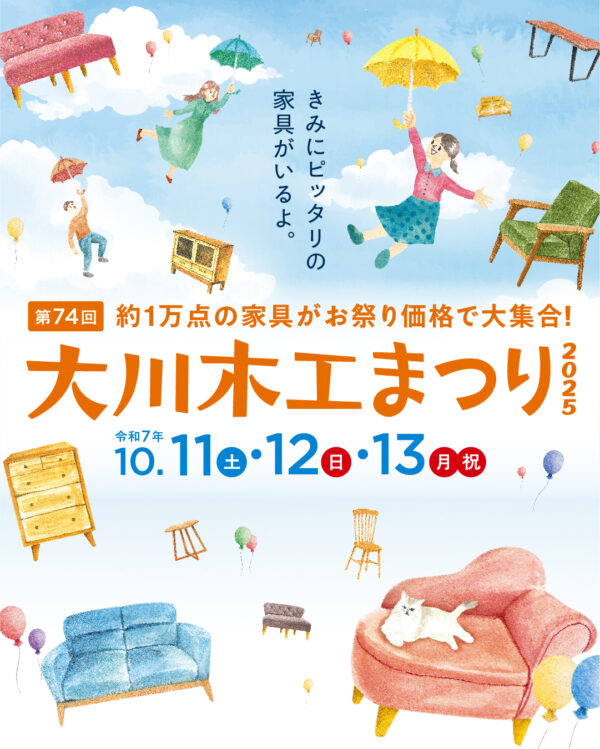 2025年10月11日~13日「第74回 大川木工まつり」に大川産業会館・2階に出展致しました。